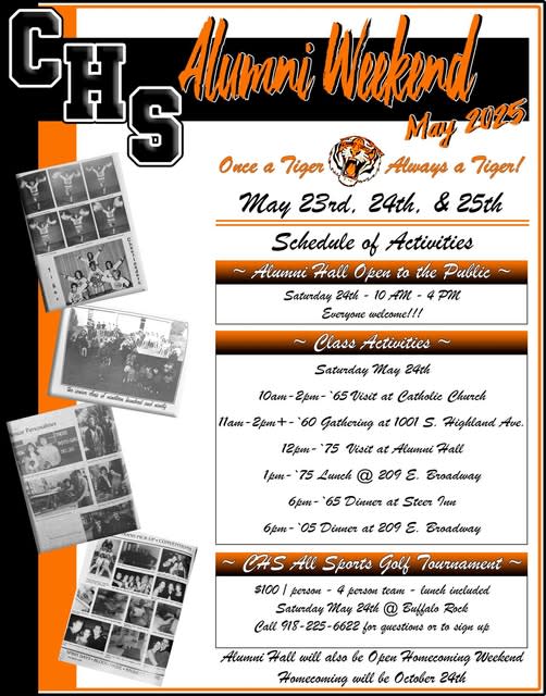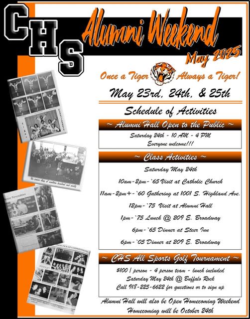 The Spring 2025 Oiler for Alumni Weekend is going to print at the end of this week. We are looking for your class reunion information to finish the page in the magazine. Please send to travis.peery@gmail.com or call 405-213-9600 if you have questions.