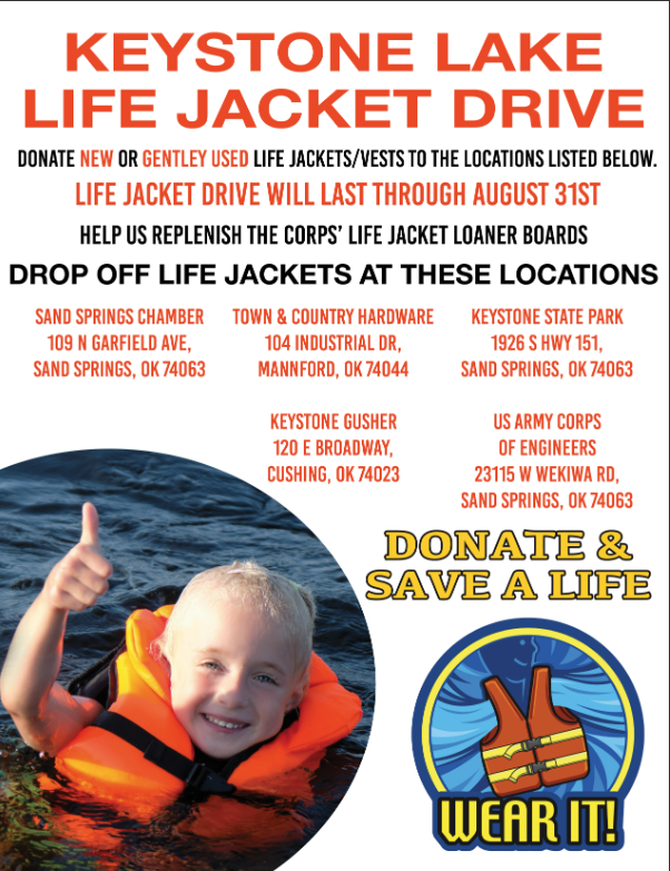 Keystone Lake Life Jacket Drive. Donating one could save one persons life.