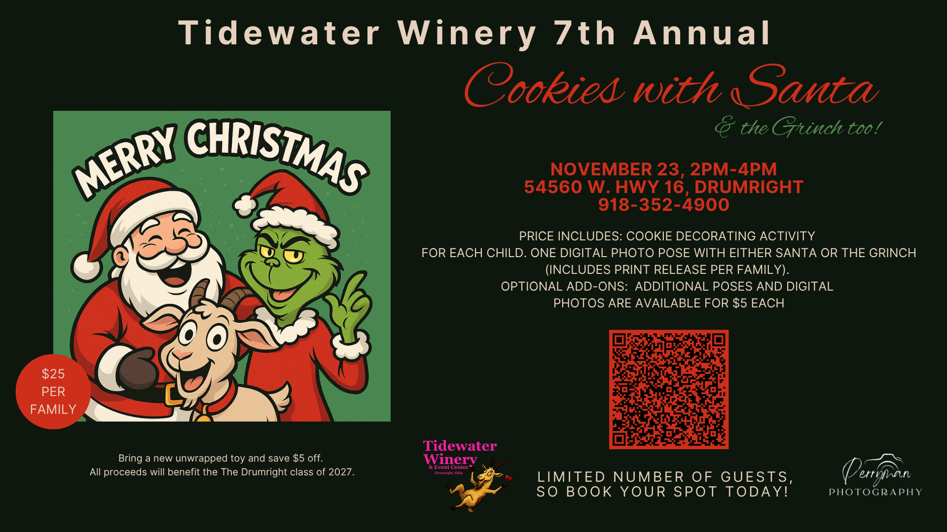 • Santa and The Grinch will be available at the end of every time slot for extra photo opportunities!