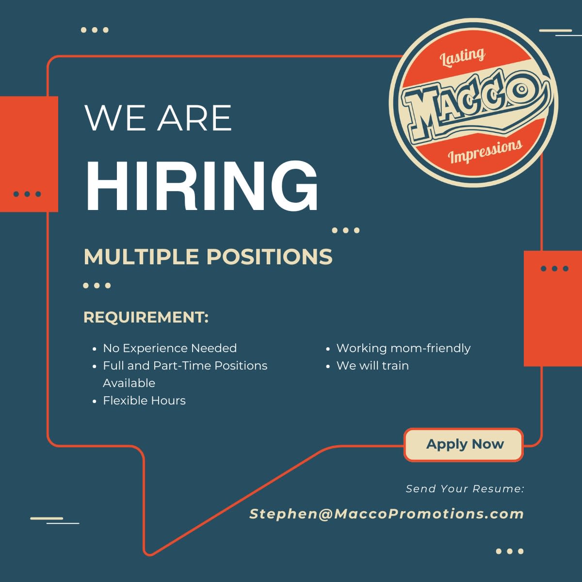 📧 Please email your resume to: stephen@maccopromotions.com